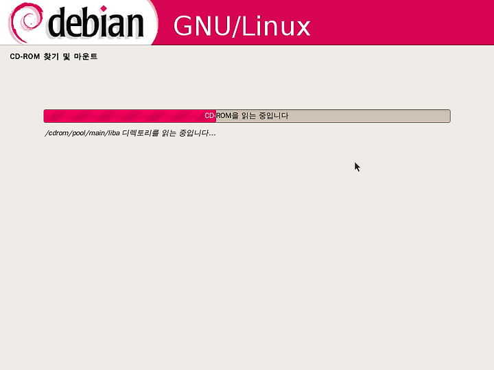 위와 같이 CD-ROM을 읽거나 기타 필요한 정보를 로딩한다. 잠시 기다리면 다음 화면으로 넘어가게 된다.
