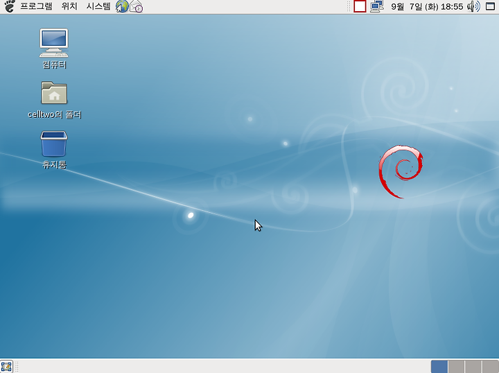 데비안의 경우 레드햇 계열 리눅스와 다르게 root 계정으로 로그인 하는 것이 보안을 위해 기본적으로 안되기 때문에 새로운 계정을 생성을 한다. 내 경우에는 celltwo 계정으로 생성을 하였다.