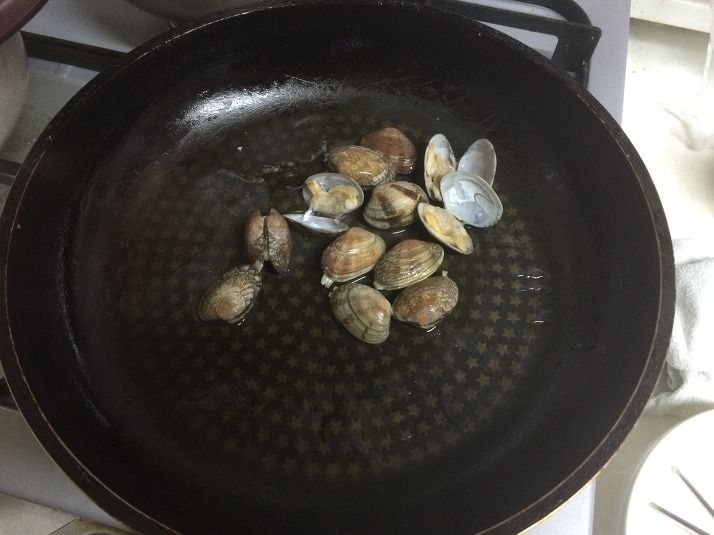 4> 올리브유를 두른 프라이팬에 바지락을 넣고 데쳐준다.
