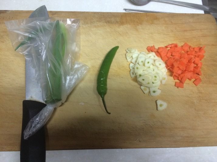 2> 당근, 마늘, 청양 고추, 파를 잘게 썬다.