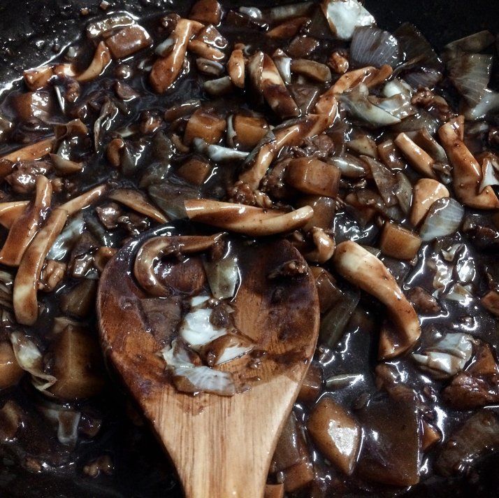 6> 마무리로 전분물을 붓고 물을 살짝 졸여주면 맛있는 자장이 완성된다.