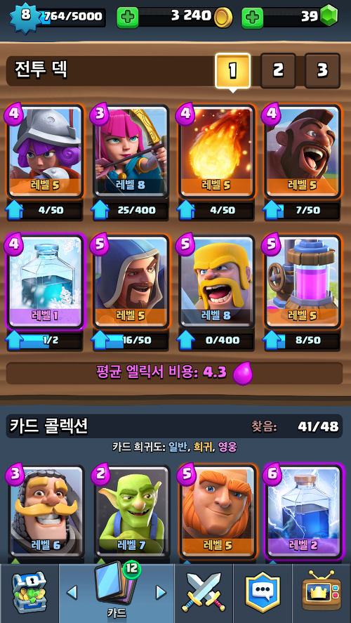 요즘 즐겁게 하고 있는 모바일 게임 중에 SUPERCELL에서 만든 클래시 로얄 되시겠다.