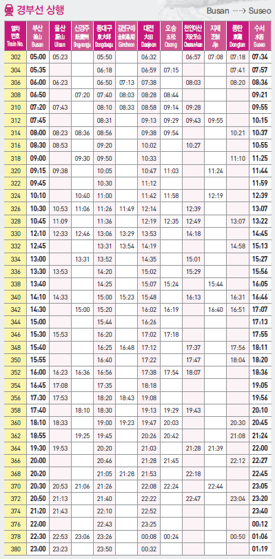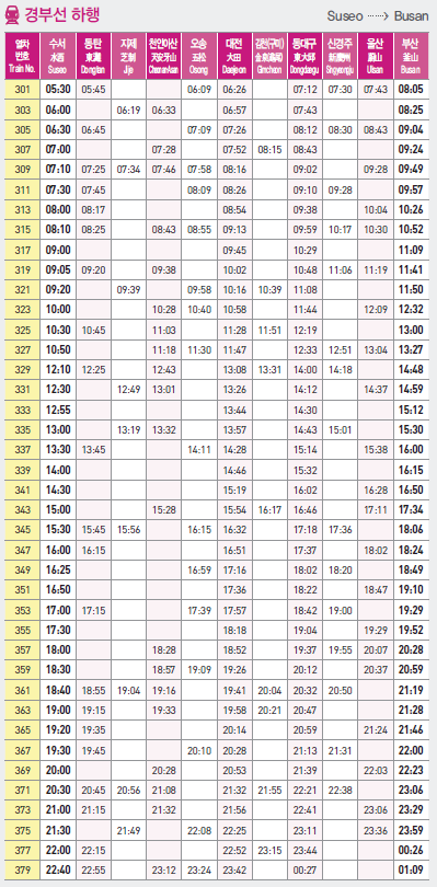 SRT 열차 시간표