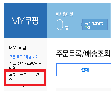 2. MY쿠팡에서 로켓와우 멤버십 관리를 클릭한다.