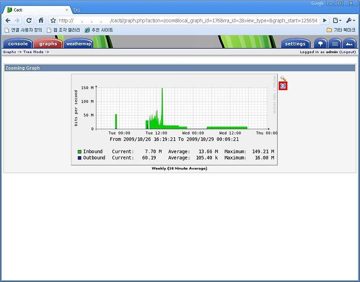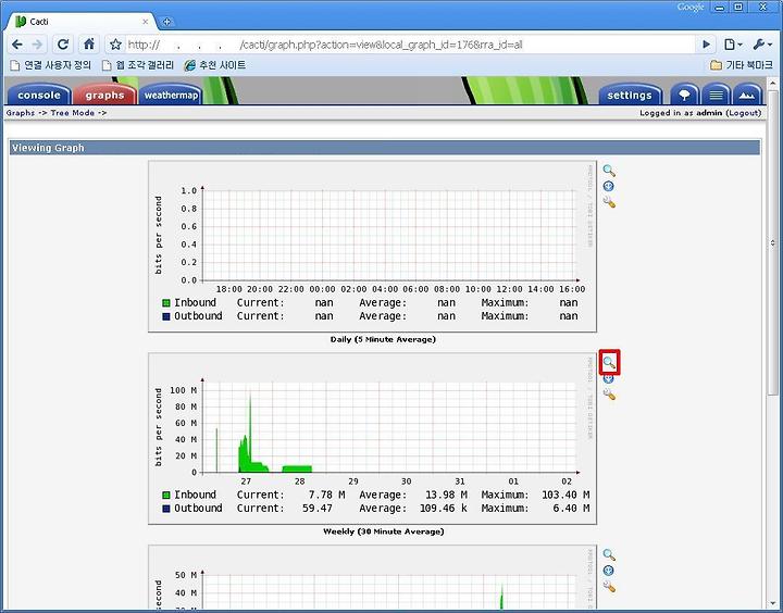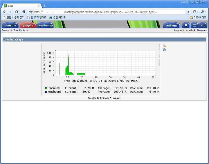Cacti에서 graphs를 보면 필자가 설치한 서버는 임시로 운용되다가